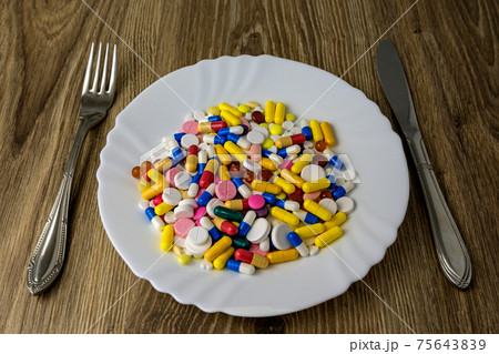 A bunch of pills on a plate