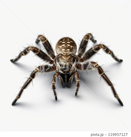 Closeup of a Spider on a white background, highlighting details and textures. Scary Insect Halloween Decor