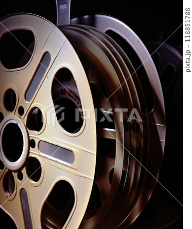Vintage Film Reels CloseUp for Media and Cinematic Use Perfect for Artistic Projects