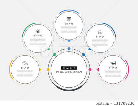 Infographics circle timeline with 5 number data template.Illustration abstract background.