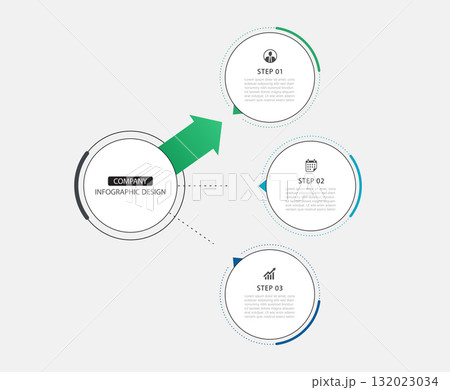 3 infographics data with arrows symbol timeline template. Illustration business abstract background.