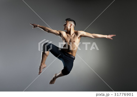 Modern style dancer posing on grey background