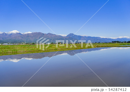 信州の風景 冬の拾ヶ堰と北アルプス 長野県安曇野市