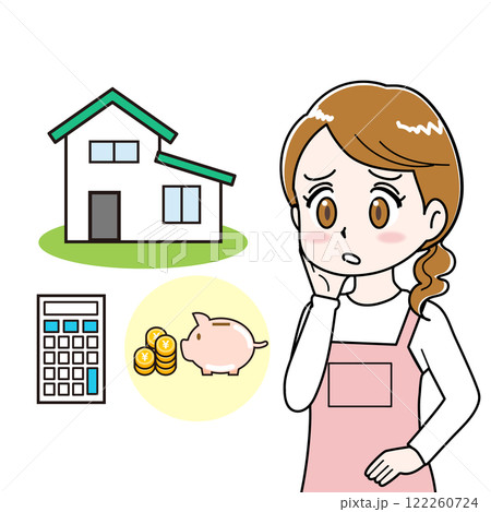 住宅ローン返済に悩む女性(主婦)のイラスト