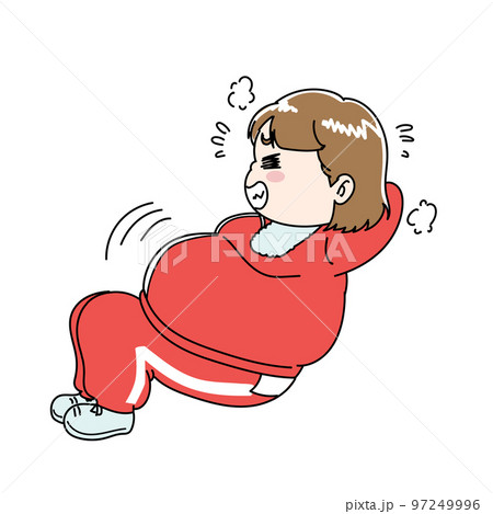 筋トレをするメタボ気味な女性のダイエットイラスト