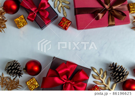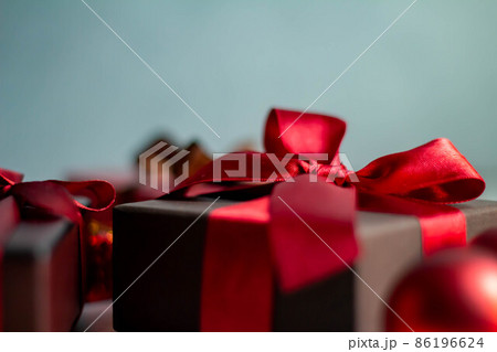 赤いリボンで飾ったギフトボックスのクリスマスのイメージ