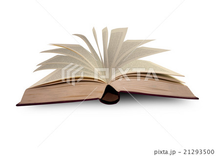 Open old book on white