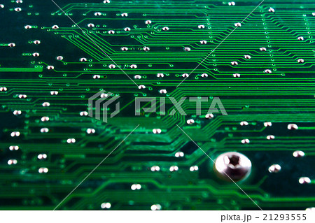 Close up a green printed circuit board