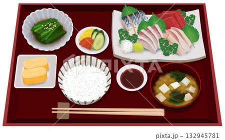 リアルな刺身定食のイラスト