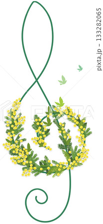 ト音記号とミモザの花をあしらったイラスト