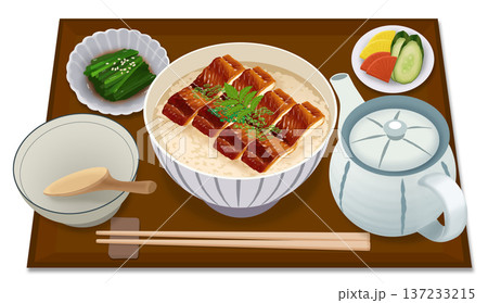 リアルな和定食ひつまぶしのイラスト