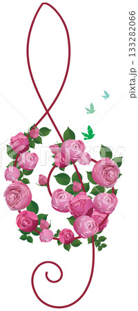 ト音記号とピンクの薔薇をあしらったイラスト
