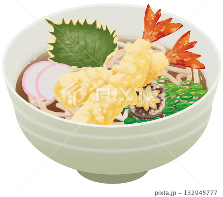 リアルな海老の天ぷらそばのイラスト