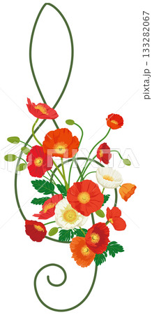 ト音記号とポピーの花をあしらったイラスト
