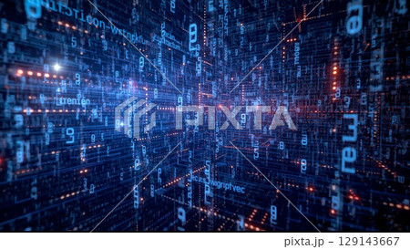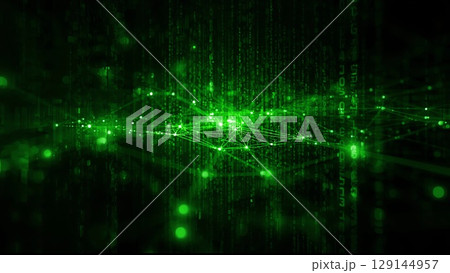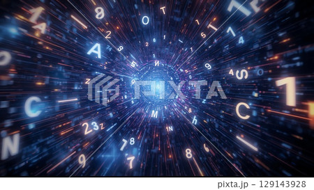 Abstract modern digital technological radiant dark background with glowing letters and numbers