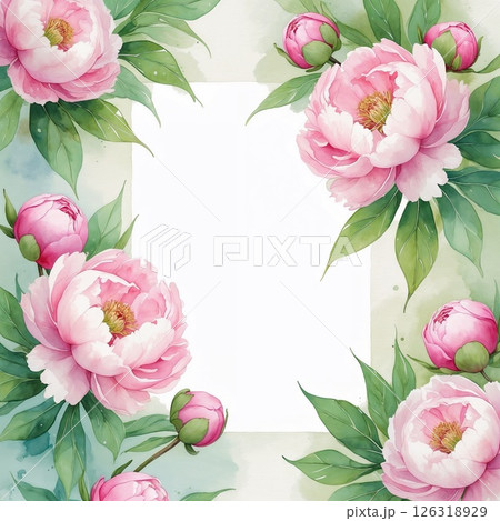 Delicate watercolor peonies with white mock up for greeting card or invitation