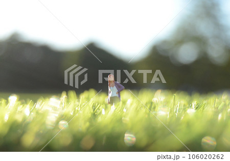 草原に立つ女性のミニチュア