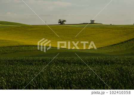 Field waves with trees in the spring in South Moravia, Czech Republic