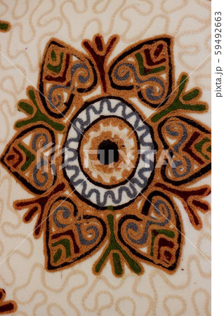 Handmade decoration on fabric.