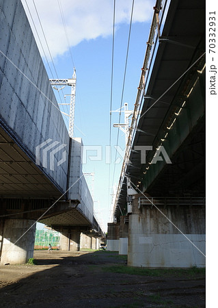 東海道新幹線と横須賀線の多摩川沿いの高架下(川崎側)