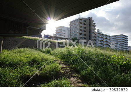 川崎市のガス橋から見た多摩川の朝の風景