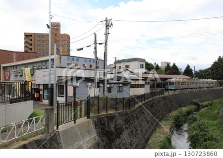 ニュージーランドウェリントンケーブルカー頂上駅に停車するケーブルカー
