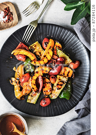 Grilled Butternut Squash,Zucchini ,Pepper with Harissa sauce