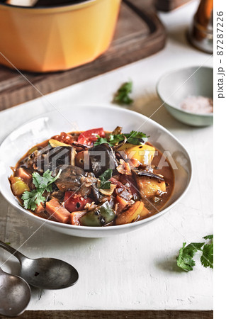 Aubergine with Carrot ,Bell Pepper and Cherry tomatoes Stew