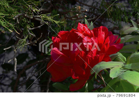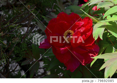 花、牡丹、赤色、自宅の庭で咲きました@南区、堺市、大阪府