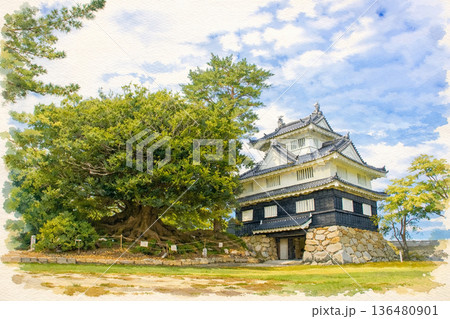 [三重県]玉城町の田丸城の天守跡の水彩画