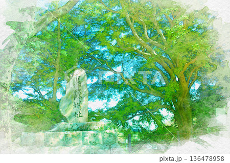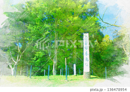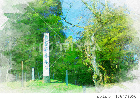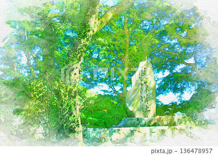 [三重県]松阪市にある松坂城の表門跡石碑の水彩画
