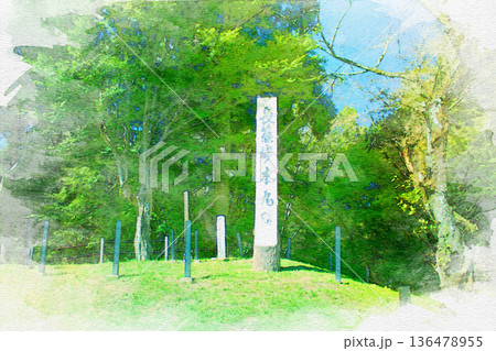 [愛知県]新城市の長篠城跡石碑の水彩画