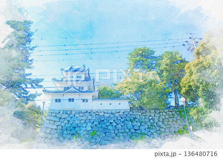 [愛知県]日進市岩崎町の岩崎城の水彩画