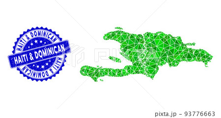 Rosette Rubber Badge With Green Vector Lowpoly Haiti and Dominican Republic Map mosaic