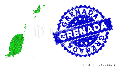 Rosette Textured Seal Imprint and Green Vector Triangle Filled Grenada Map mosaic