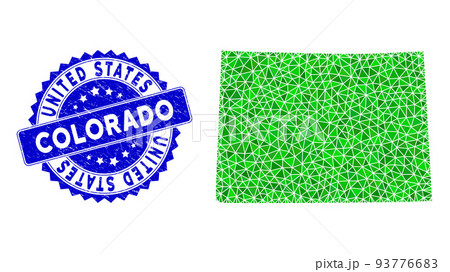 Rosette Grunge Seal With Green Vector Lowpoly Colorado State Map mosaic