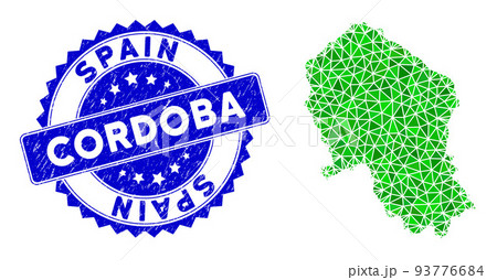 Rosette Textured Badge And Green Vector Triangle Filled Cordoba Spanish Province Map mosaic
