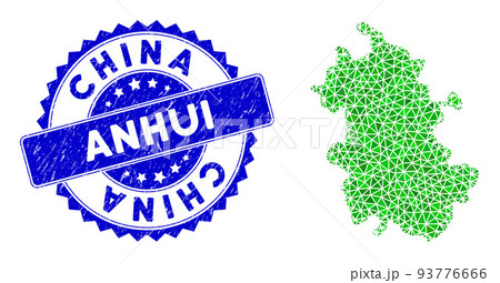 Rosette Scratched Seal with Green Vector Lowpoly Anhui Province Map mosaic
