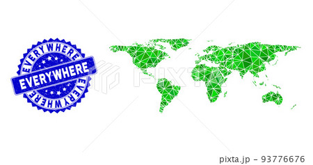 Rosette Scratched Seal Imprint and Green Vector Triangle Filled Everywhere Map mosaic