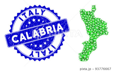Rosette Textured Seal Imprint and Green Vector Triangle Filled Calabria Region Map mosaic