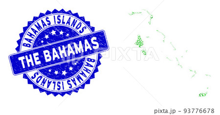 Rosette Textured Stamp With Green Vector Polygonal Bahamas Islands Map mosaic