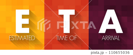 ETA Estimated Time of Arrival - time when a ship, vehicle, aircraft, cargo, emergency service, or person is expected to arrive at a certain place, acronym text concept background