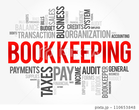 Bookkeeping is the recording of financial transactions, and is part of the process of accounting in business, word cloud concept background