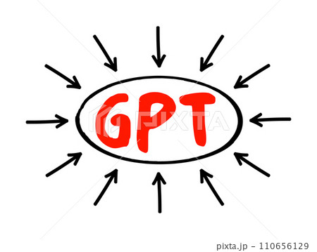 GPT GUID Partition Table - standard for the layout of partition tables of a physical computer storage device, acronym text with arrows