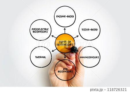 Types of Biosensors (analytical device, used for the detection of a chemical substance) mind map concept background
