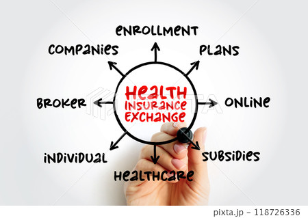 Health insurance exchange - health insurance marketplace, is a comparison-shopping area for health insurance, mind map concept for presentations and reports