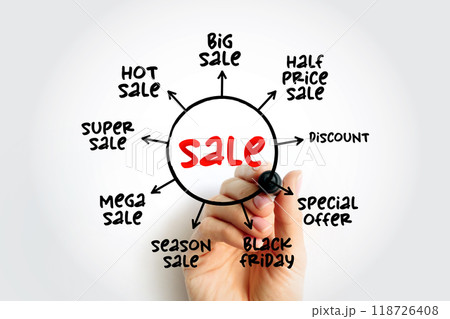 Sale tags mind map, great sale, special offer, sale concept with marker