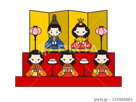 ひな祭りのひな壇イラスト お雛様とお内裏様と三人官女