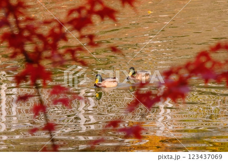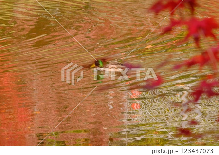 紅葉とカモ