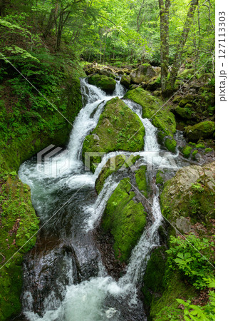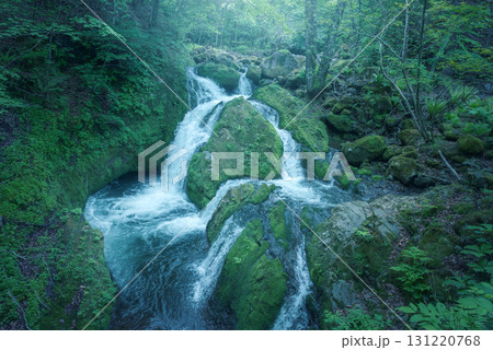 苔むした岩を流れる清流の滝